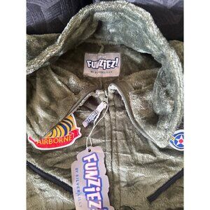 Unisex Olive Green Pilot-Themed Fleece Onesie With Patches & Zip Closure By Funz
