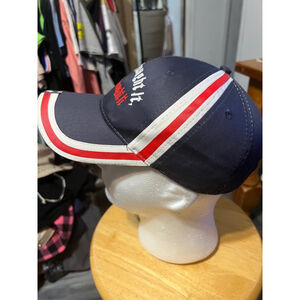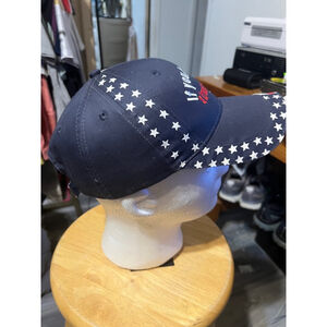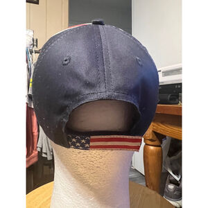 "item_description": "This is a pre-owned Otto brand baseball cap. It features a navy blue crown with white mesh backing. The front displays the phrase \"If you bought it, a truck brought it\" in red and white lettering. The brim is decorated with white stars and red and white stripes. The back has an adjustable strap with an American flag design. The cap is made of 100% cotton and is labeled as \"One Size Fits Most.\""