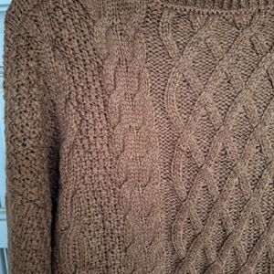 Unisex Oversized Cable Knit Sweater SzXL Long Sleeves Brown Loose Knit