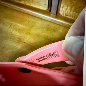 These vibrant pink Crocs sandals feature a classic design with a perforated top for breathability and a pivoting heel strap for a secure fit. Made from Croslite foam, they offer a comfortable, slip-on style perfect for casual wear. The waterproof construction ensures durability and ease of maintenance. The colorful decorations and the shoes are removable.