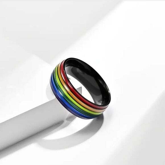 Unisex Rainbow Pride Ring BlackTone 7 8 9 10
