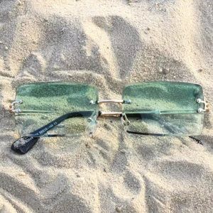 These rimless glasses are green depending on the lighting the can be light green or darker green!