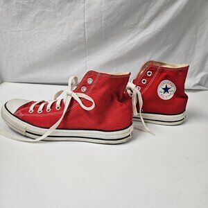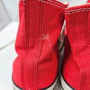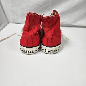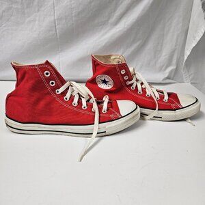 This is a nice pair of red Converse high top All Star sneakers. There is a few marks on them but are still in good shape. See pics 4 and 6. These are unisex with size being Men's 10 and Women's 12.