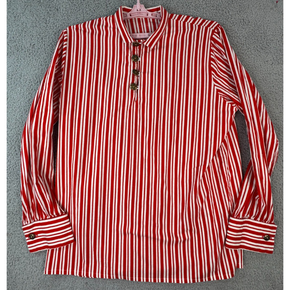 Unisex Red White Candy Cane Top Long Sleeve Button Cuff Handmade Long Sleeve