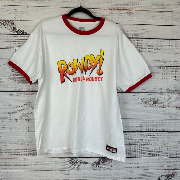 Unisex Rowdy Ronda Rousey White Red Ringer WWE UFC Cotton T Shirt Size XL