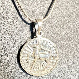 Unisex Silver Sagittarius Zodiac Sign 3D Pendant Necklace 925 Italy 20" Chain
