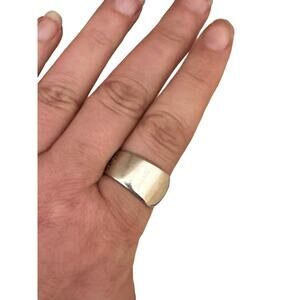 Size 9 spoon ring created from sterling silver plated flatware. Simple, clean design, great for a unisex look.