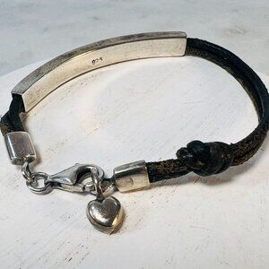 Unisex Sterling Silver & Leather "Love You More" Bracelet With Heart Charm