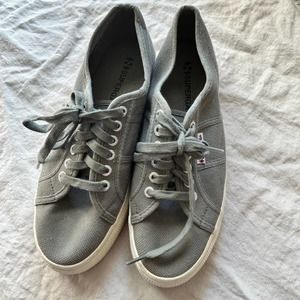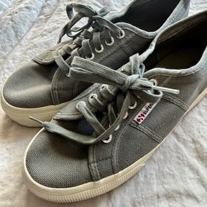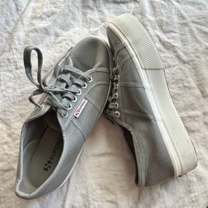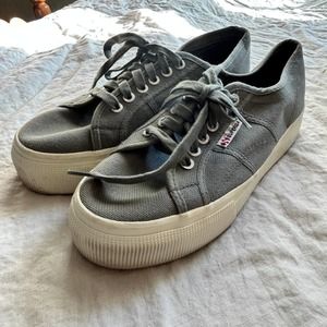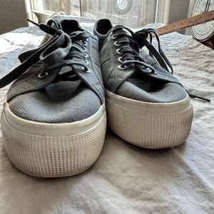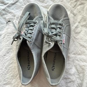 In great shape. Minor signs of wear. Superga Sage Gray Platform Sneakers. Size 41.
