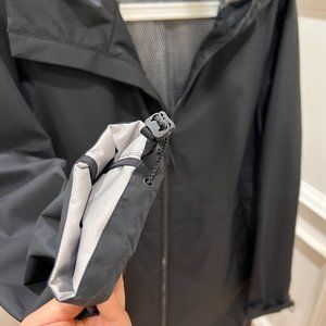 Style: Black hooded trench coat. Very lightweight. This maybe a men's coat but I bought it for myself. (never wore it though). The material looks like water proof so this may actually be a rain coat. Inner pocket at left side.