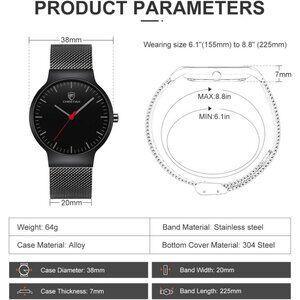 Unisex Ultra Thin Waterproof Analog Quartz Watch with Stainless Steel Mesh Band