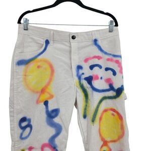 Dickies Upcycled White Painters Pants Multicolor Graffiti Swag Smiley