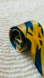 Old Vintage Silk Striped Tie Upcycled with added Yellow Flocked New York Yankees Iron-on Decal