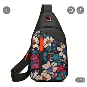 Floral nylon crossbody sling bag, versatile mini chest pack with zip closure.