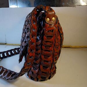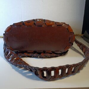 Unisex Woven Large Flap Brown Leather Boho Satchel Crossbody Message Bag