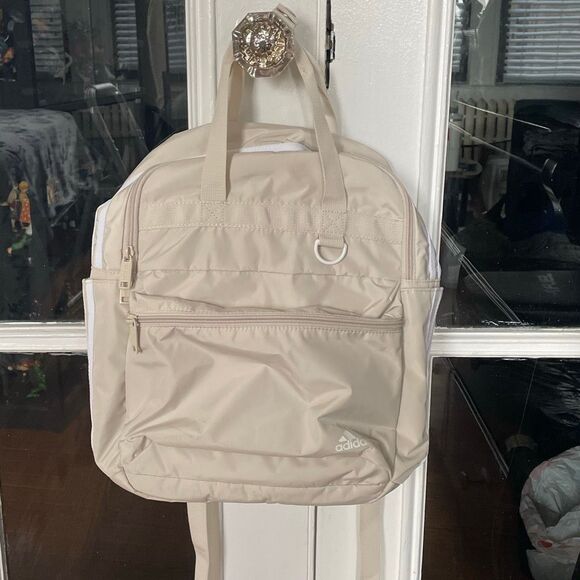 Unisex adidas Essentials 2 Alumina Backpack book bag beige & white preowned