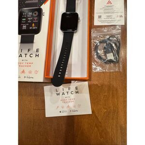 It’s compatible with an iPhone or android both. It does body temperature monitoring heart rate push notification sleep monitoring heart rate, blood pressure and blood oxygen. Works. Smoke free and clean home.
