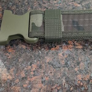 This belt is 2" wide and adjustible enough to fit most sizes.