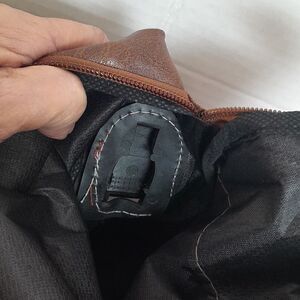 This bag id sooo versatile you will wonder why it took you so long to get one. The leather-look fabric is easy care. This bag had no issues and is in excellent condition. It about 12" x 8".