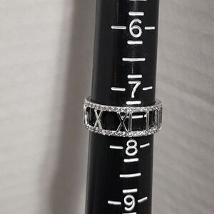This classic roman numeral ring looks like that other famous brand but at a fraction of the price. The faux diamonds are sparkly and complete. It is made of stainless steel so it will never tarnish...but it certainly will get you noticed! No tags are available but it is new.
