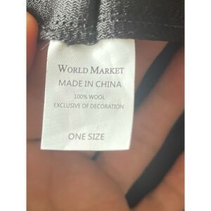 Stylish brown fedora hat by World Market made from 100% wool with a soft finish. Features a wide brim and an elegant natural feather hatband with spotted details. Size is one size fits most. Made in China. RN# 31905, SKU# 508556. Do not wash, bleach, tumble dry, iron, or dry clean.