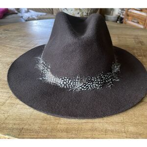 Unisex World Market Wool Fedora Hat Brown Feather Band One Size boho-inspired