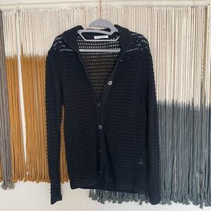 Gently worn black cardigan bikin cover up with buttons. 66% Cotton 34% Silk
