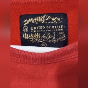 This United By Blue sweatshirt features a warm red hue and a classic crew neck design, perfect for casual outings. Made from a comfortable knit material, it includes ribbed cuffs and hem for a snug fit. The subtle logo on the chest adds a touch of brand identity to this everyday essential.