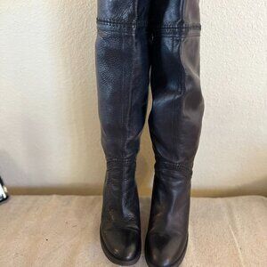 United Colors Of Benetton Black Leather Heeled Knee Hight Boots Sz 9-9.5