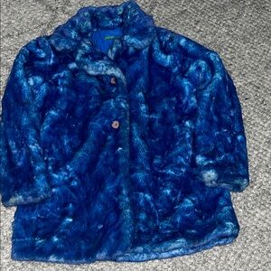 Stylish faux fur jacket in rich blue. Ideal for a bold fashion statement.