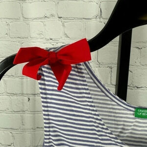 United Colors of Benetton dress. Blue and white stripes with red details. Tank style with bows on shoulders. No size tag so please check measurements. Looks to be around an 8 or 10. Great condition. Smoke free home.