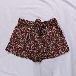 Floral print, lightweight shorts. Double pleats. Two front pockets. Matching belt tie.