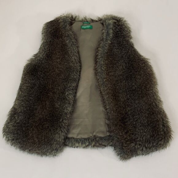 United Colors of Benetton Faux Fur Vest Girl XL 10/11 Brown Fluffy Preppy Glam