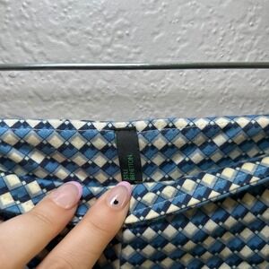 United Colors of Benetton Geometric Print Pants Blue White Career Casual Preppy