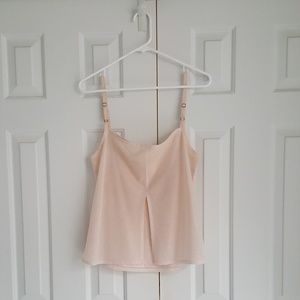 EUC light pink Benetton tank top made of delicate, polyester. Straps are adjustable. Please note that the back is sheer & has a large opening (see photos).