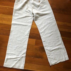 What are the waist, rise, and inseam measurements, please? I’m also curious about the fabric content and whether the pants are missing a button or if the second button is just undone. Thank you.