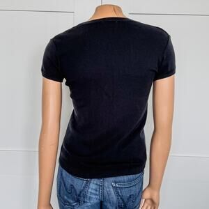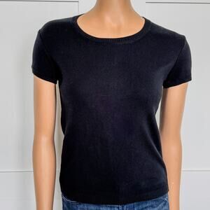 United Colors of Benetton, Solid Black Crew Neck Light Weight Sweater Short Sleeve Blouse, Purchased in Paris, France Summer of 2024, 100% Cotton