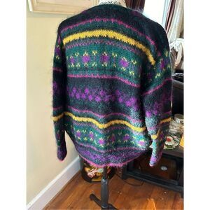 United Colors of Benetton Vintage Cardigan Sweater Mohair Blend Buttons Green Purple Yellow