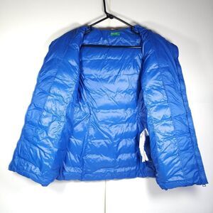United Colors Of Benetton Women's Sz 4 Blue Down Full Zip Hooded Jacket Coat. Made in Italy