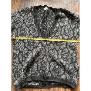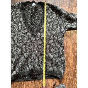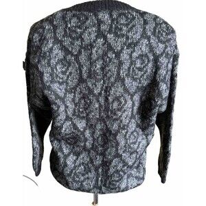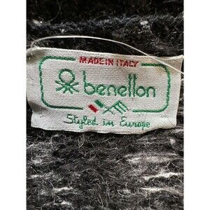 United Colours Of Benetton Sweater V Neck L Italy 3/4 Sleeves Black Grey VTG