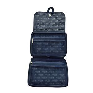 United Global First Amenity Bag in Navy Blue. Tri-fold case with inner zipper pockets and a snap closure. Excellent condition — no rips, stains, or holes.