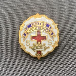 United Presbyterian Pin Vintage Sunday School Enamel Pinback Cross & Crown