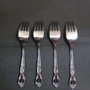 United Silver Stainless Acadia Salad/Dessert Fork-Japan-Pierced-Floral-Lot of 4