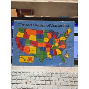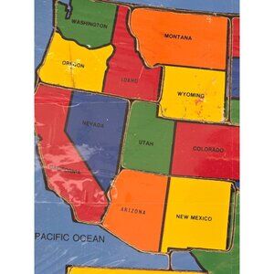 This vintage Arrow Toy puzzle of the United States of America is not only a delightful collectible but also an educational tool for children and adults alike. With vibrant colors and precise cutouts, it enhances geographical knowledge and cognitive skills. Perfect for vintage collectors or anyone seeking a nostalgic piece of Americana.