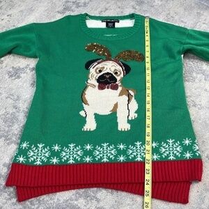 United States Sweaters Pug Ugly Christmas Sweater Holiday Party Dog Green Sz M