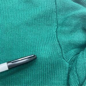 This sweater is in great condition but does have a faded circle area on the right side of the back and a small white spot on the right back shoulder area (see last two photos for details).