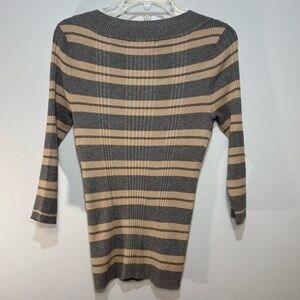 United States Sweaters Striped V-Neck Sweater - Gray and Tan. Size M