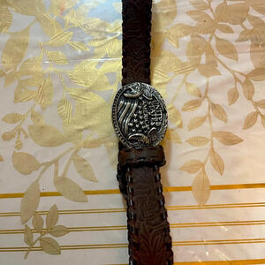 United States of America USA Eagle Flag Belt Buckle TOOLED Brown Leather Belt M