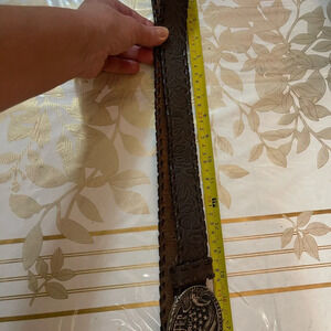 Pre owned. Excellent condition. The buckle on the back has darkened metal, the leather on the belt is in excellent condition