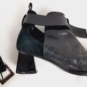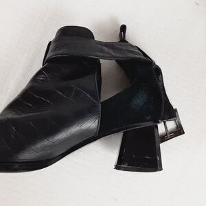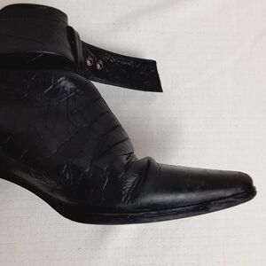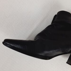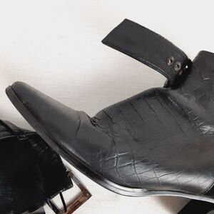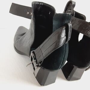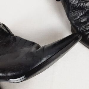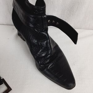 United Tokyo Womens Black Leather Boots with Buckle Animal Print Design